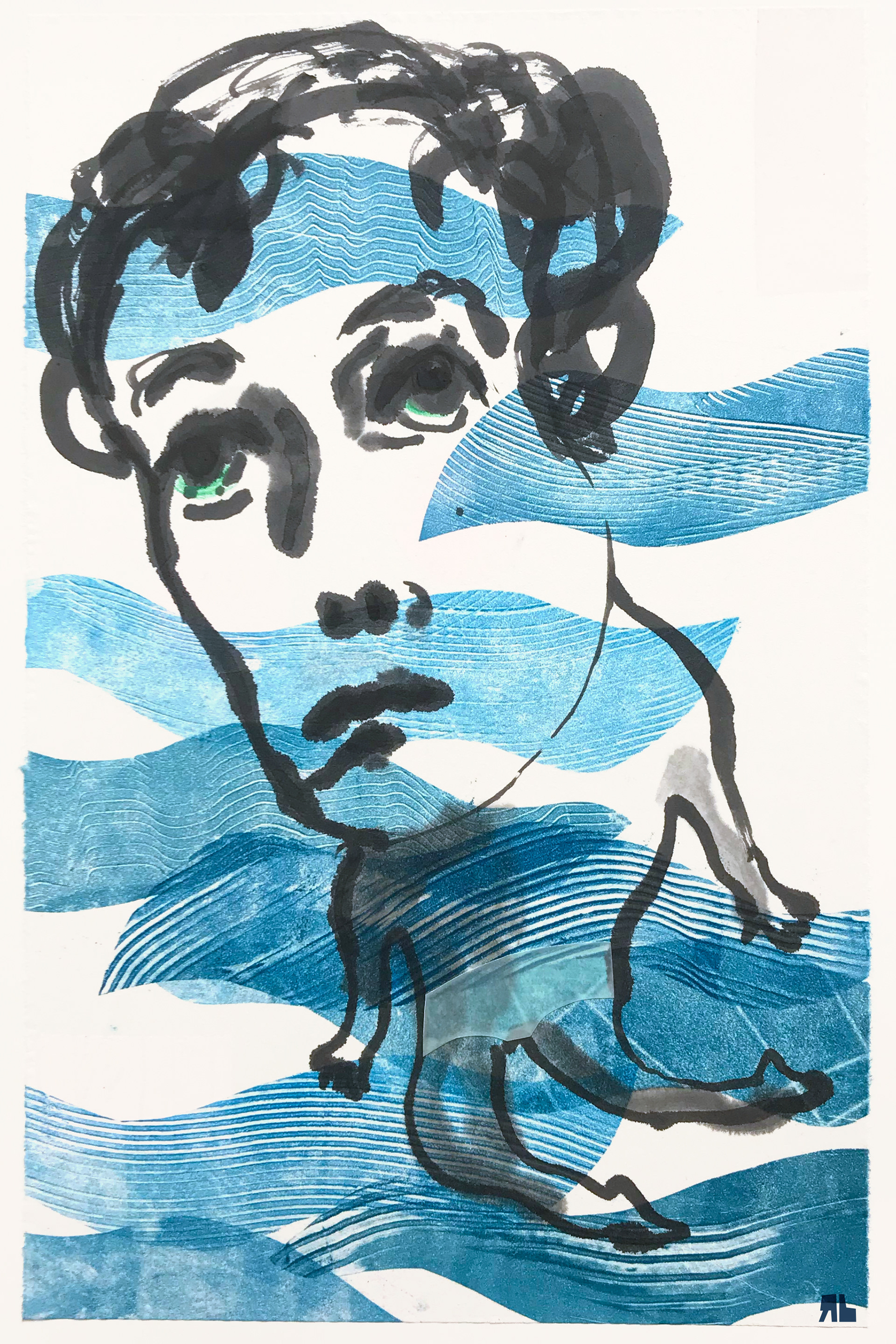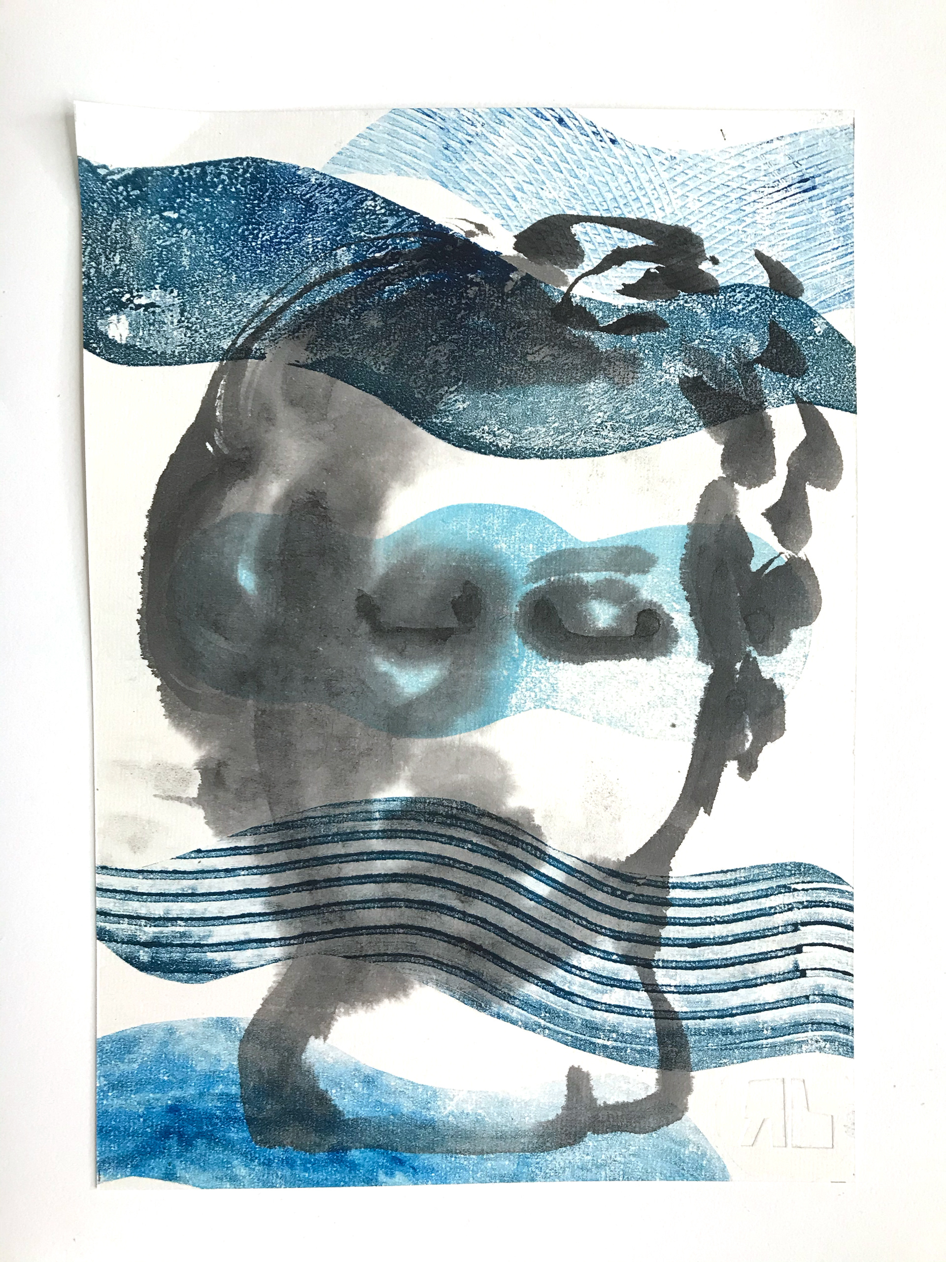The meaning of the river flowing. Sumi-e en monotype, 2019